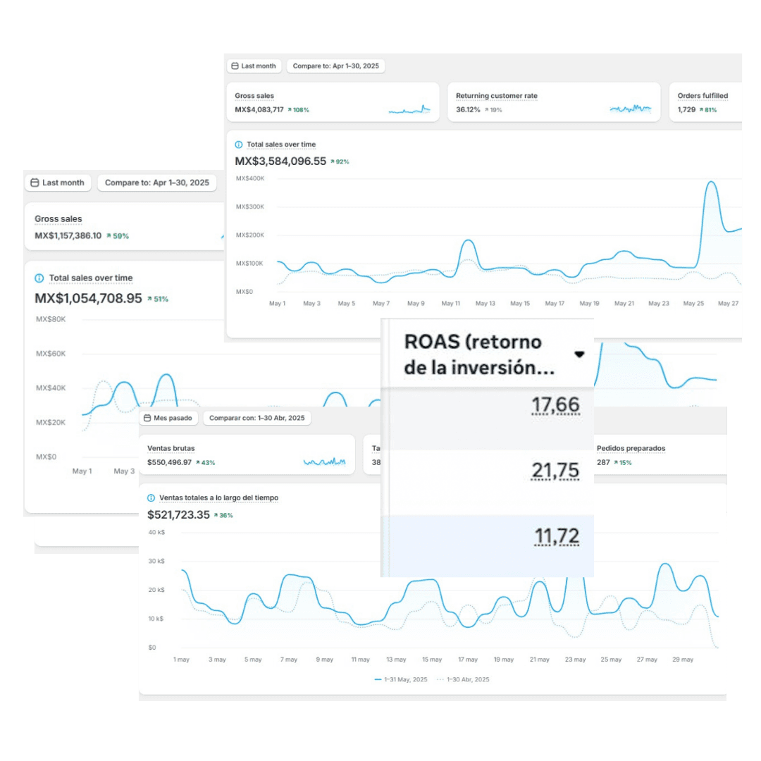 Inviertes $30k/mes en ads pero no tienes claridad real de qué productos son rentables, qué campañas funcionan, o si estás tirando dinero. Tomas decisiones a ciegas y eso te aterroriza.